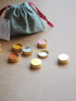 Each set is packaged in a moss/mint green handloom cotton mini sack. Ribbon colour may vary. A small white linen card with product details is attached using jute cord, making this set a thoughtful and gift-ready choice.
