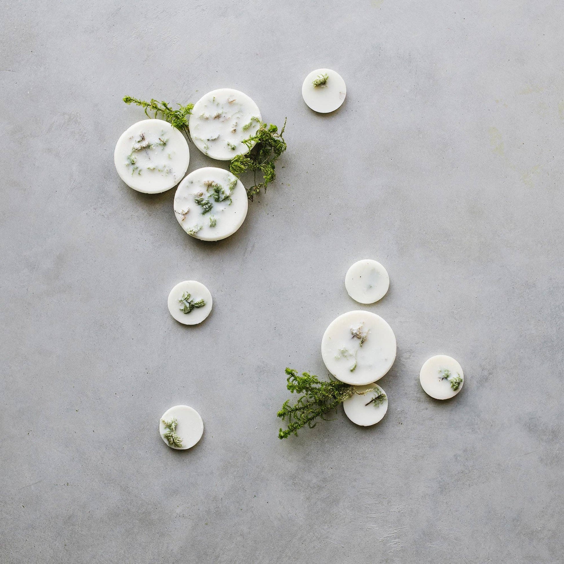 Welcome to the secret forest. Moss Scented Wax Rounds carry a rich, woody fragrance inspired by a forest after rain — fresh, grounding, and quietly luxurious.