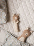 Meet your little one's first friend. This sweet brave bear rattle has been designed for little hands to grip, shake and squish. The rattle inside gives this a playful, interactive element and the little neck ruff adds sensory texture and cuteness.  Made from organic cotton and organic dyes, our bear rattle is soft on your little one's skin and kind to the environment. The recycled polyester filling means this toy is lightweight and snuggly, the perfect companion for the new arrival in your life. Pair with our knitted Little Hands Toys and Cuddle Cloth's to complete the collection.  Product Specification * 15cm H (exclusive of ears) x 6cm W  * Outer: 100% Organic Cotton * Filling: 100% Recycled Polyester * Suitable from birth Care Instructions * Wipe clean with a damp cloth * Do not machine wash