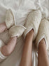 Twinning never looked so cosy... Introducing the Mama size merino booties. Cocooned & cosy... the perfect baby shower gift, treat yourself, or get involved in some all important twinning with you child. Made in one size (fits UK size 5- 7) in the color MILK. Made of 100% merino wool upper with leather sole. Comes in their own 100% cotton reusable dustbag making them the perfect gift.
