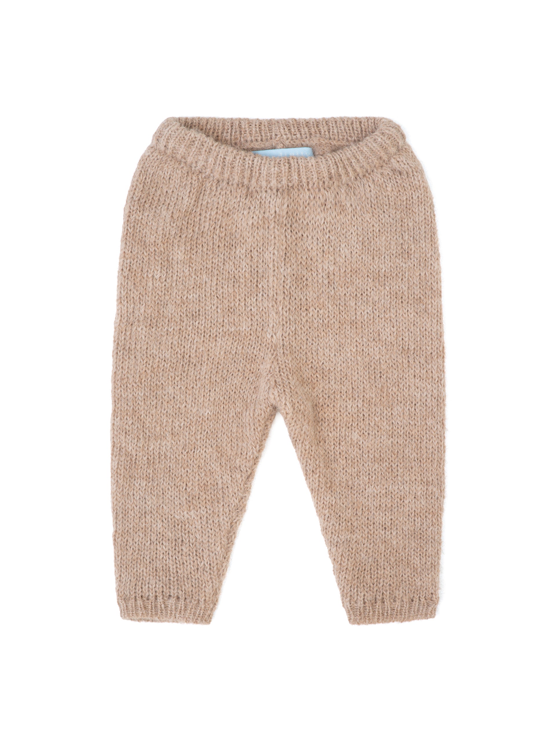 Soft wool trousers for babies in beige Suri alpaca wool – a lightweight, breathable quality made with long, silky fibers that feel exceptionally gentle on delicate skin. Finished with ribbed cuffs and an elastic waistband for a comfortable fit. Carefully knitted by small family cooperatives in Bolivia.