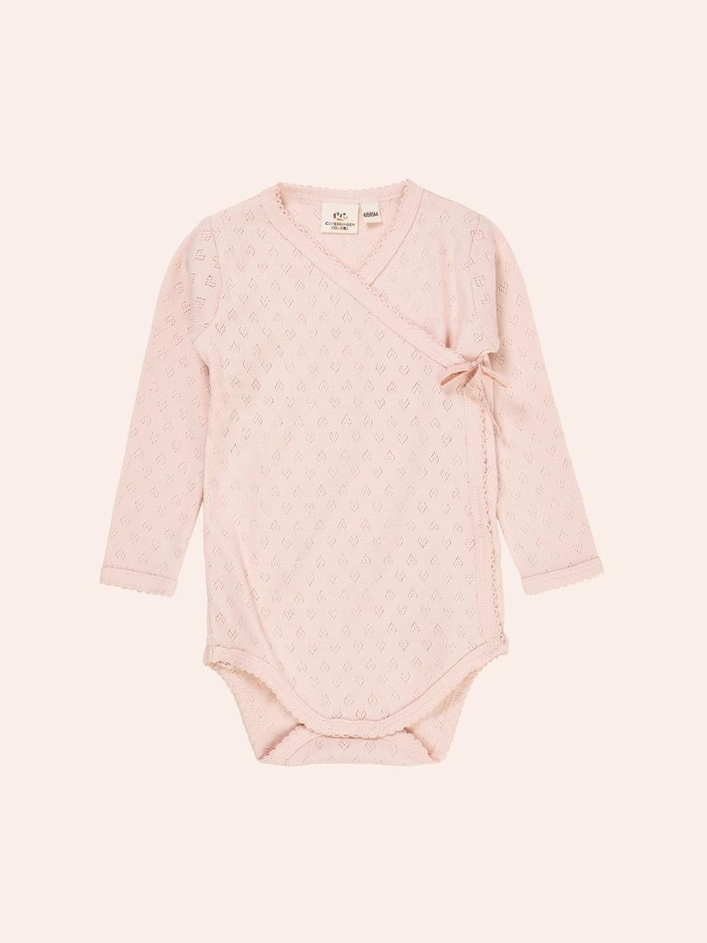 Wrap your baby in softness and comfort with the Pointelle Cross-Over Bodystocking from Copenhagen Colors.
