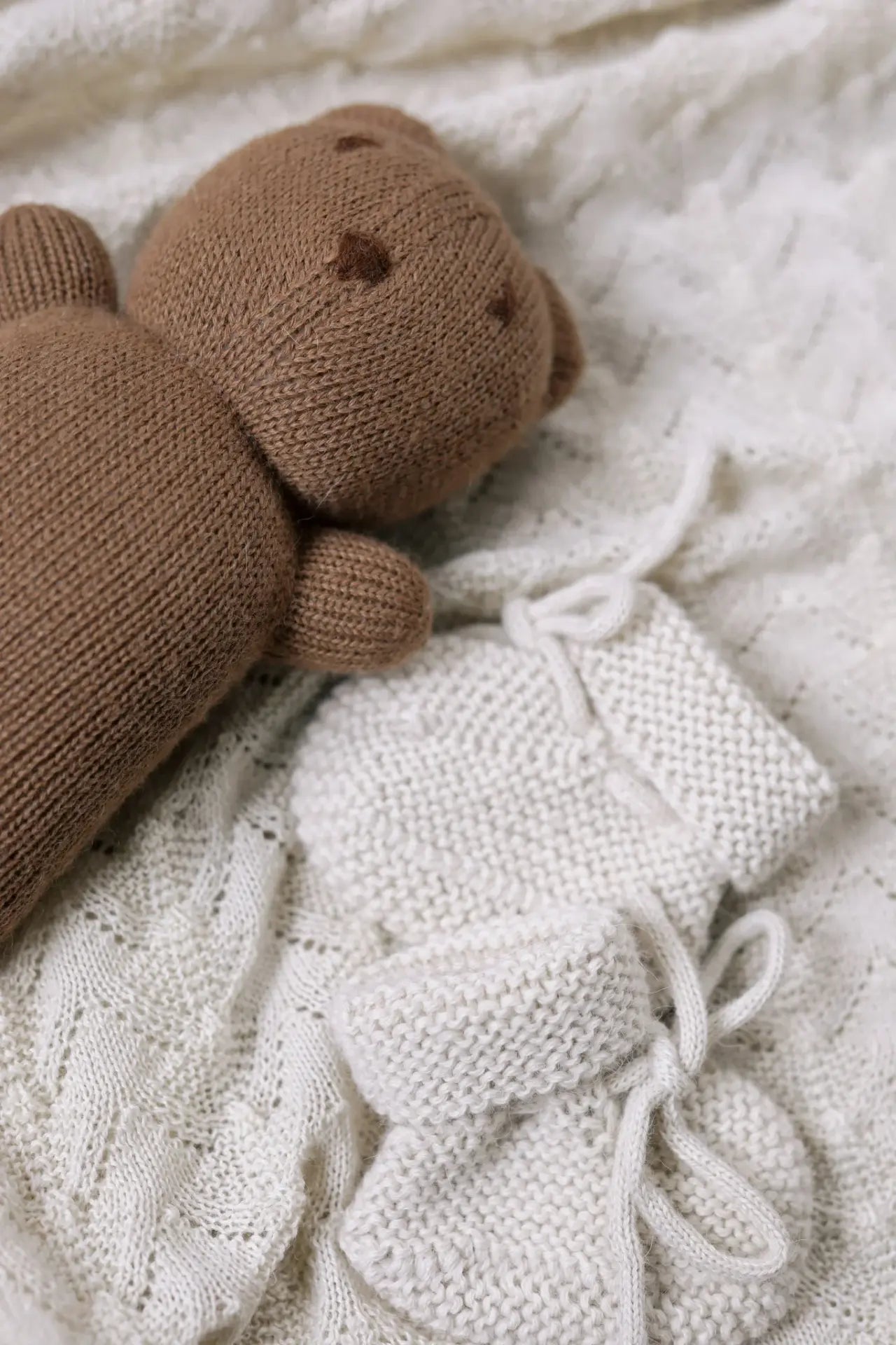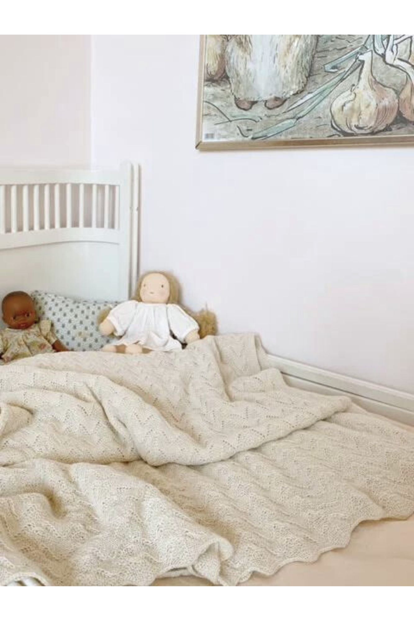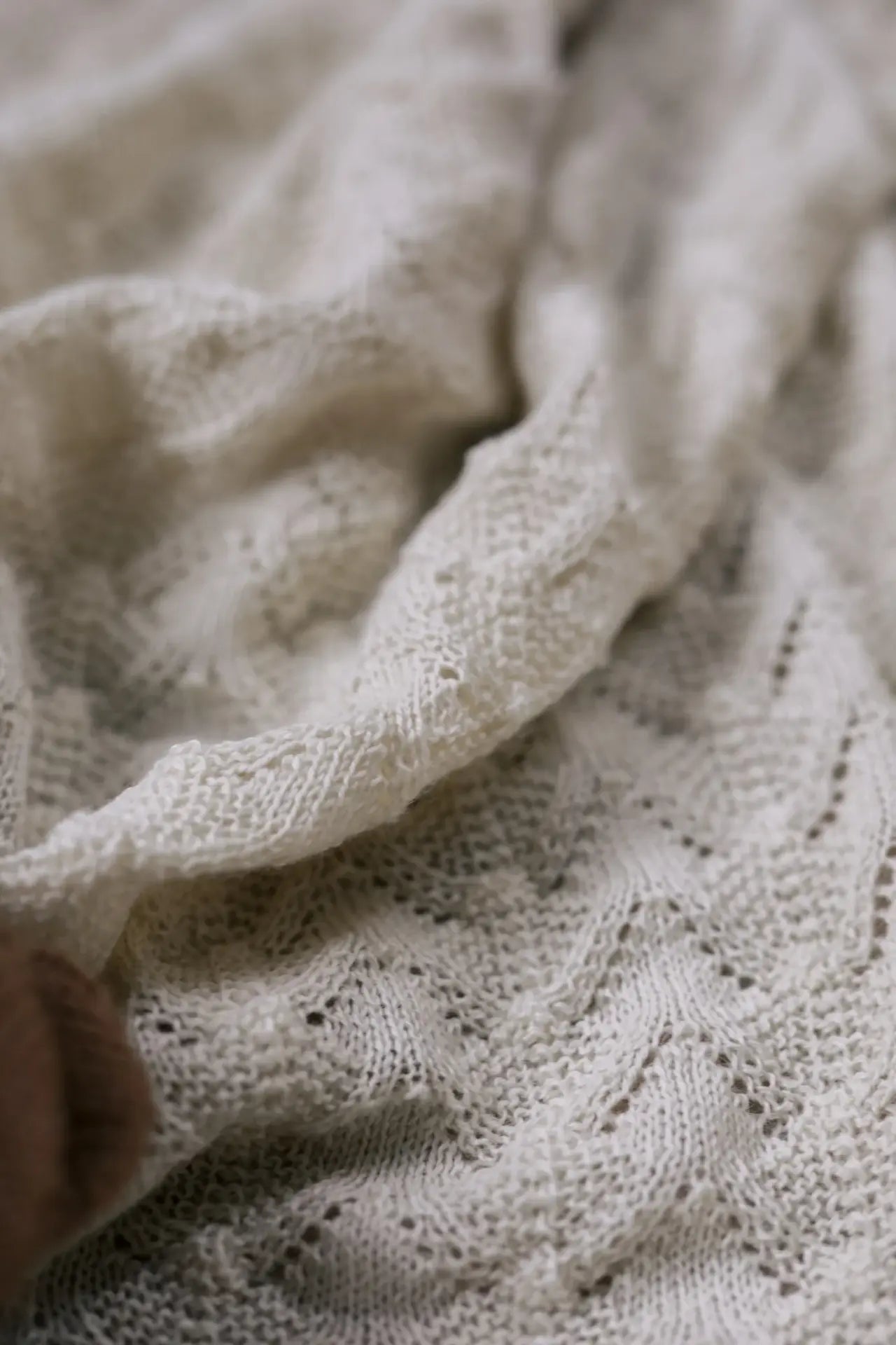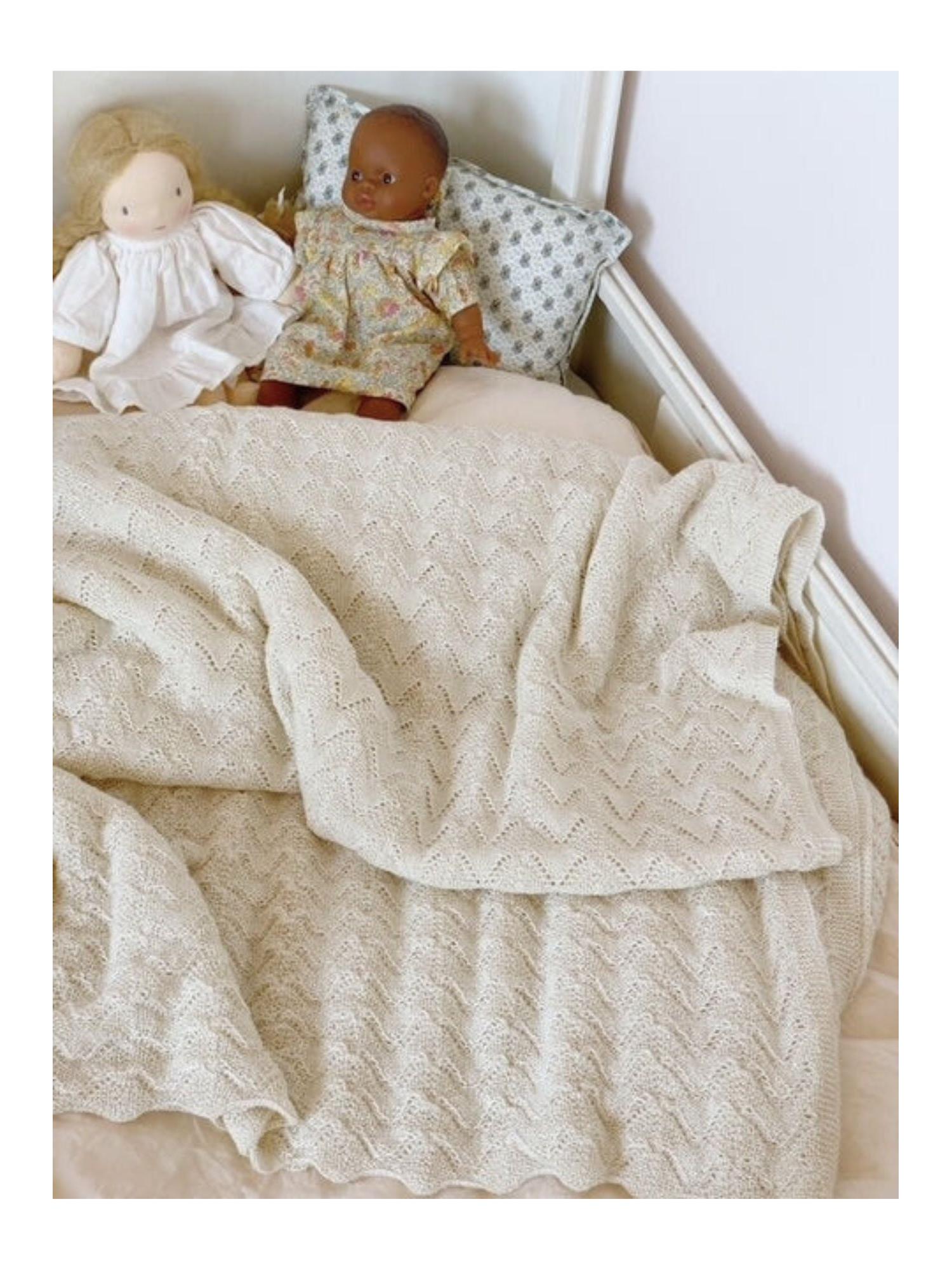 This generously sized blanket is knitted with a lace stitch pattern creating a decorative scalloped edge. The 100% alpaca yarn is warm and lightweight, perfect for tucking your little one into the pram or keeping cosy on the sofa. Size: 160 cm x 130 cm. The yarn is un-dyed and therefore has the natural alpaca color as alpaca in nature.
