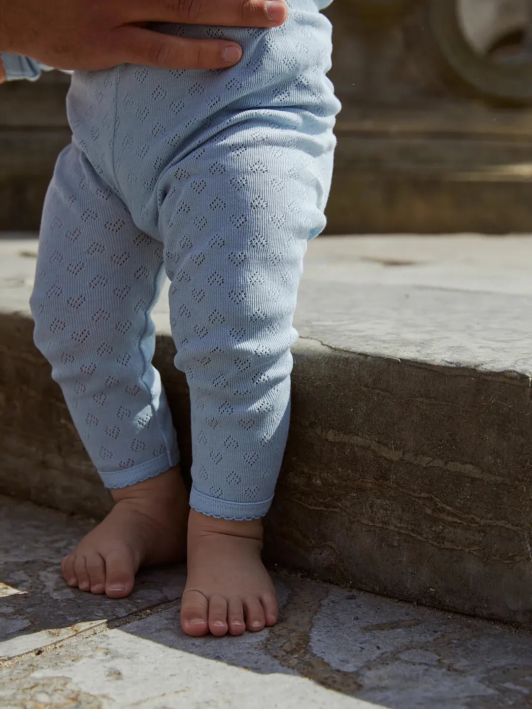 Crafted from 100% organic cotton, these soft leggings feature a delicate heart pointelle pattern that adds a sweet and timeless detail to everyday wear.