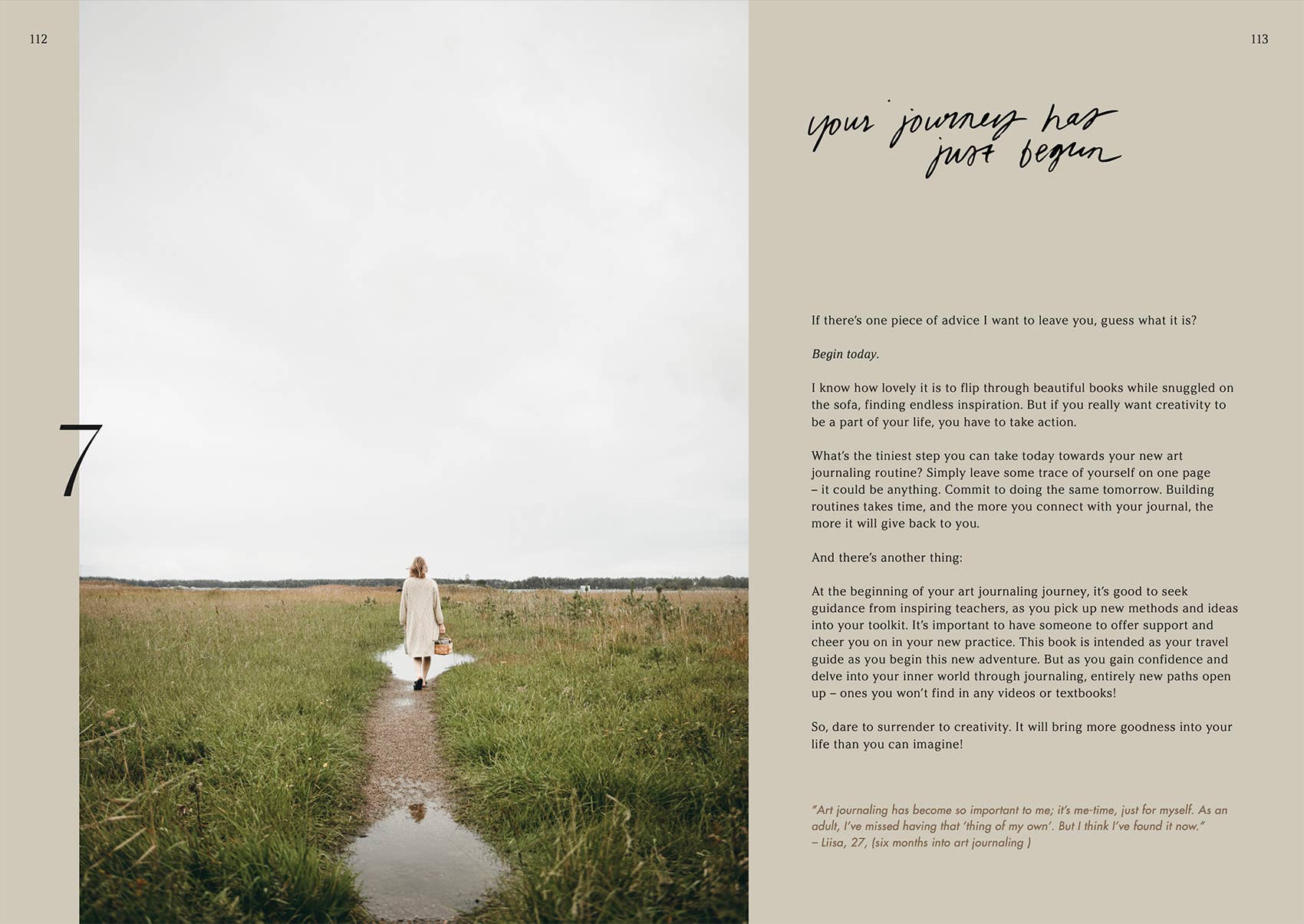 ”I used to fear failure and making the wrong decisions. Art journaling has filled my life with gentleness and courage. Now, I dare to experiment more. Art journaling has also been a huge support during tough moments and in processing emotions.”