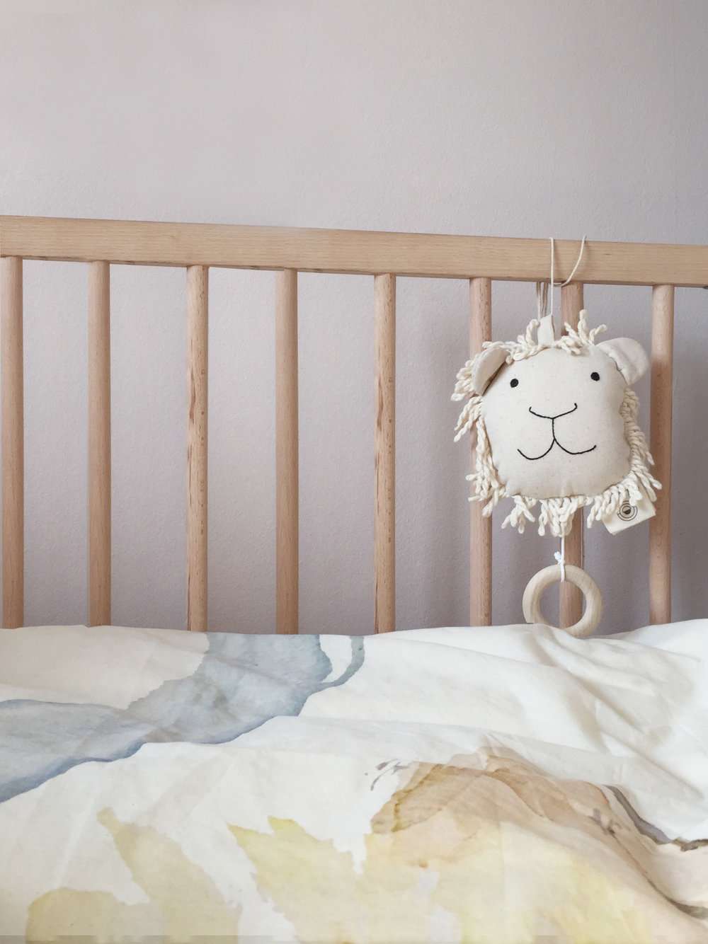 This little lion fits well in a simple Nordic style or as a soothing buddy in a children’s room filled with toys and colors. It plays Brahms lullaby and is made of 100% GOTS certified and organic canvas cotton with recycled polyester filling.