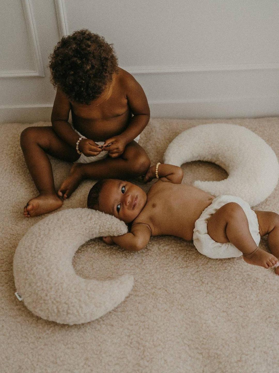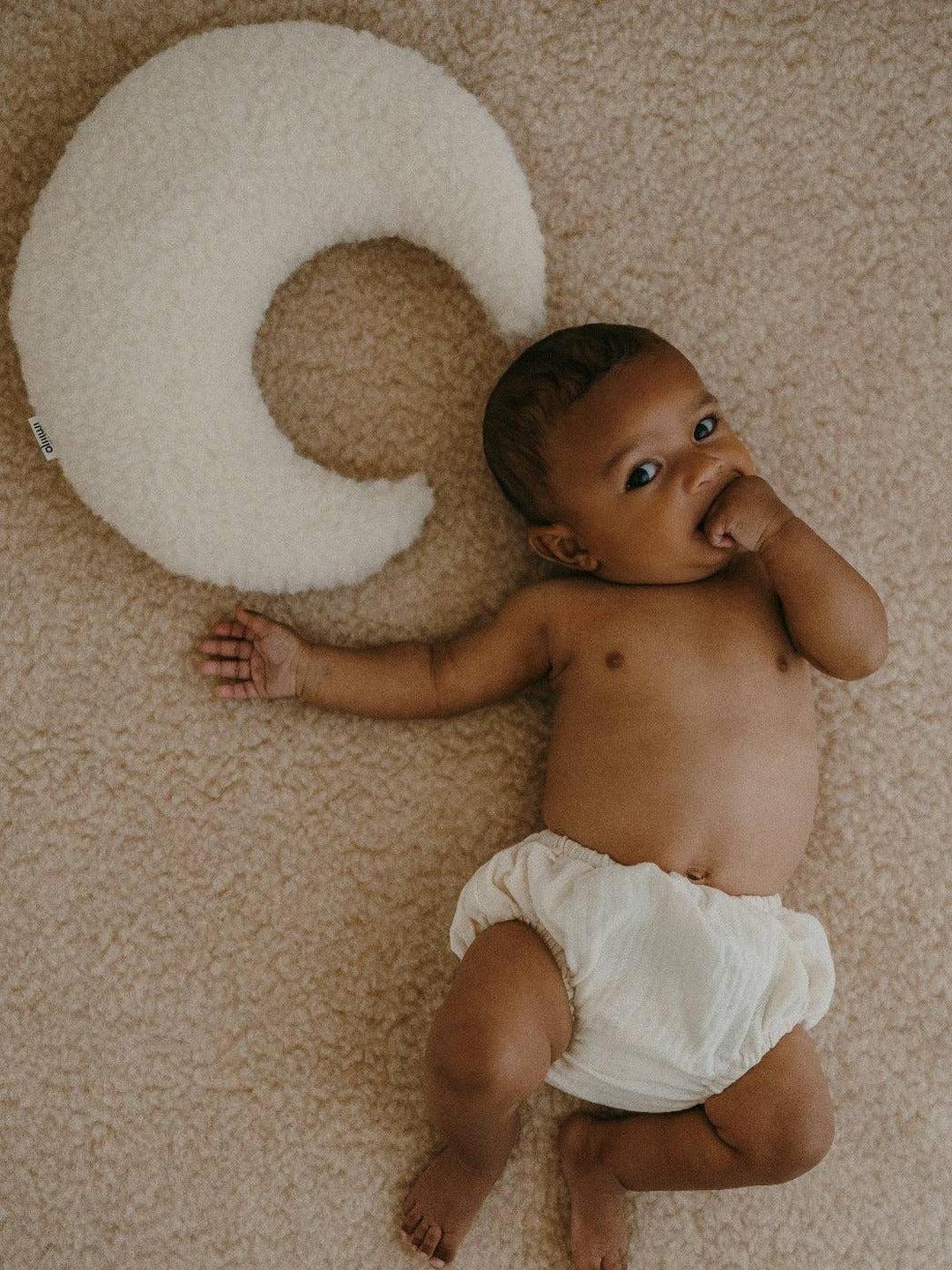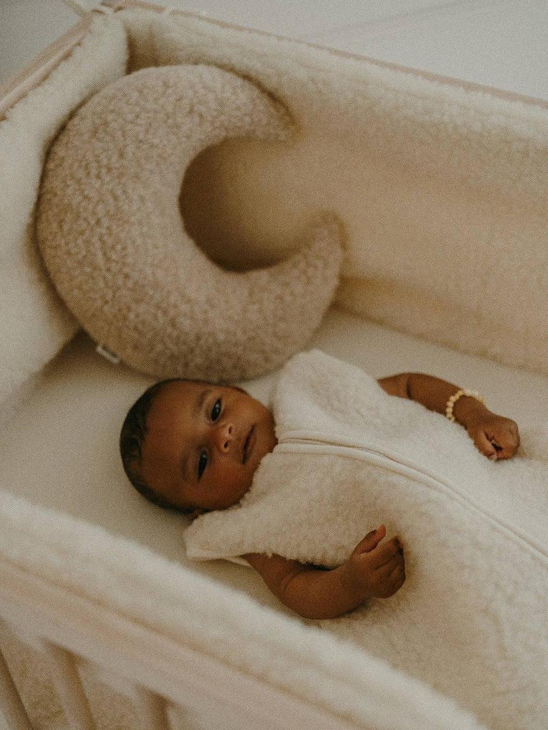 Lysor, poetry in the hollow of the moon. Crafted from 100% natural wool, Lysor is a decorative cushion that is both soft and poetic, perfect for a child's room or a living room. With its filling made of 100% recycled wool, it combines firmness and durability, maintaining its shape over time. Lysor invites daydreaming and integrates harmoniously into any interior, adding a celestial and timeless touch. Dimensions: Approximately 35x32cm.