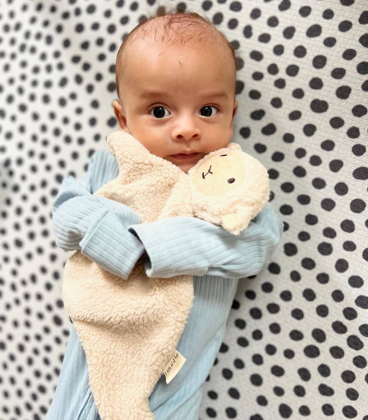 Introducing our Little sheep snuggle! Perfect for providing comfort and warmth to your little one. Made with a soft, plush material in a neutral colour, this snuggle bear is sure to become your child's favourite cuddle buddy.