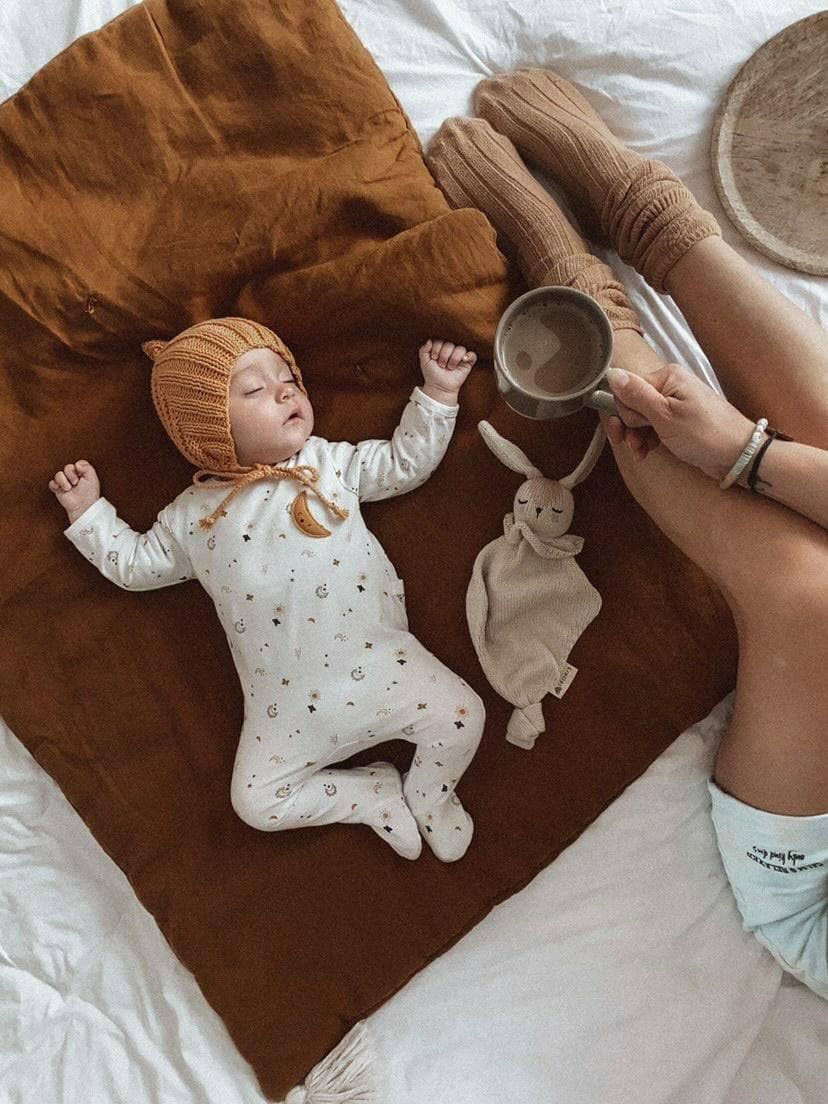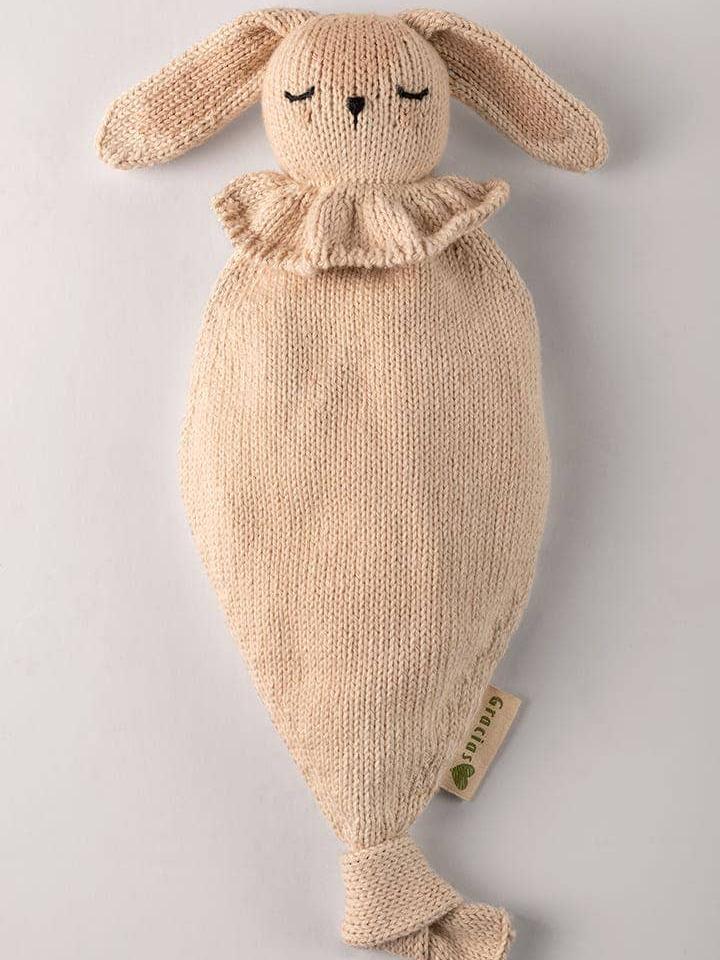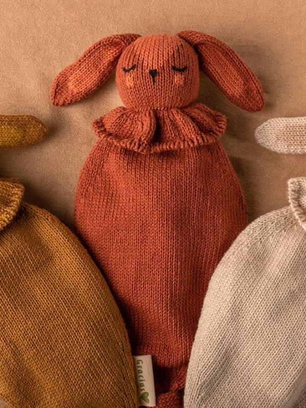 The ideal gift for birth, first birthday and/or the first Christmas! This flat 30 cm cuddly toy is the perfect size for a child's little hands to be caught and handled very easily. This handcrafted flat comforter is knitted in cotton (OEKO-TEX® certified) very soft and hand-embroidered. A design that accompanies sensory awakening - different textures - chewing ears - lightweight, easy to handle for little hands - keeps the pacifier on and attaches easily DESCRIPTION * 100% Oeko-tex® certified cotton *Dimension 31 cm high by 20 cm wide *Complies with CE EN71-1/2/3 standards *Machine wash at 30°C on a gentle cycle/do not tumble dry *1 euro donated to finance 1 day of school at the NGO Los Chicos de Cusco