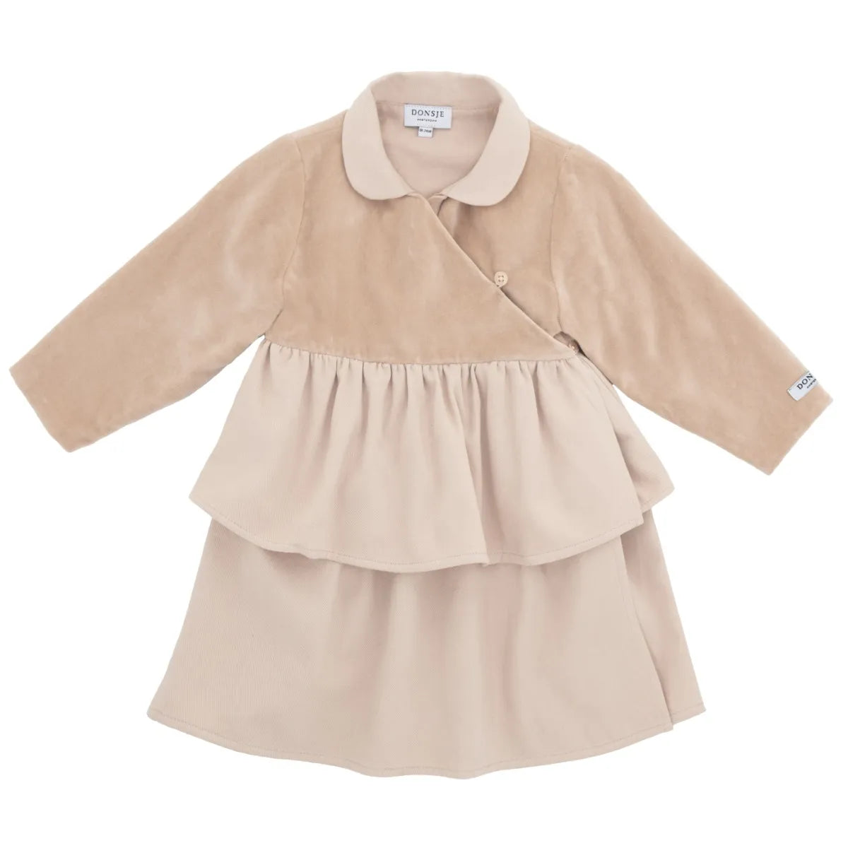 Floisa Dress in Rose Mocha from Donsje. A charming and elegant dress for girls, perfect for special occasions. Soft, detailed, and designed to be treasured.