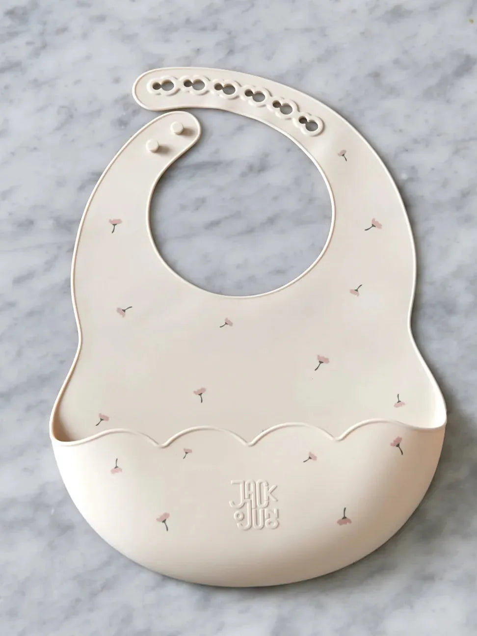 Soft and lightweight, patterned bib made of food-grade silicone with a convenient pocket to catch dropped food and an adjustable neck size for a secure and comfortable fit. The bib can be cleaned with just warm water and soap. Suitable from 6months.