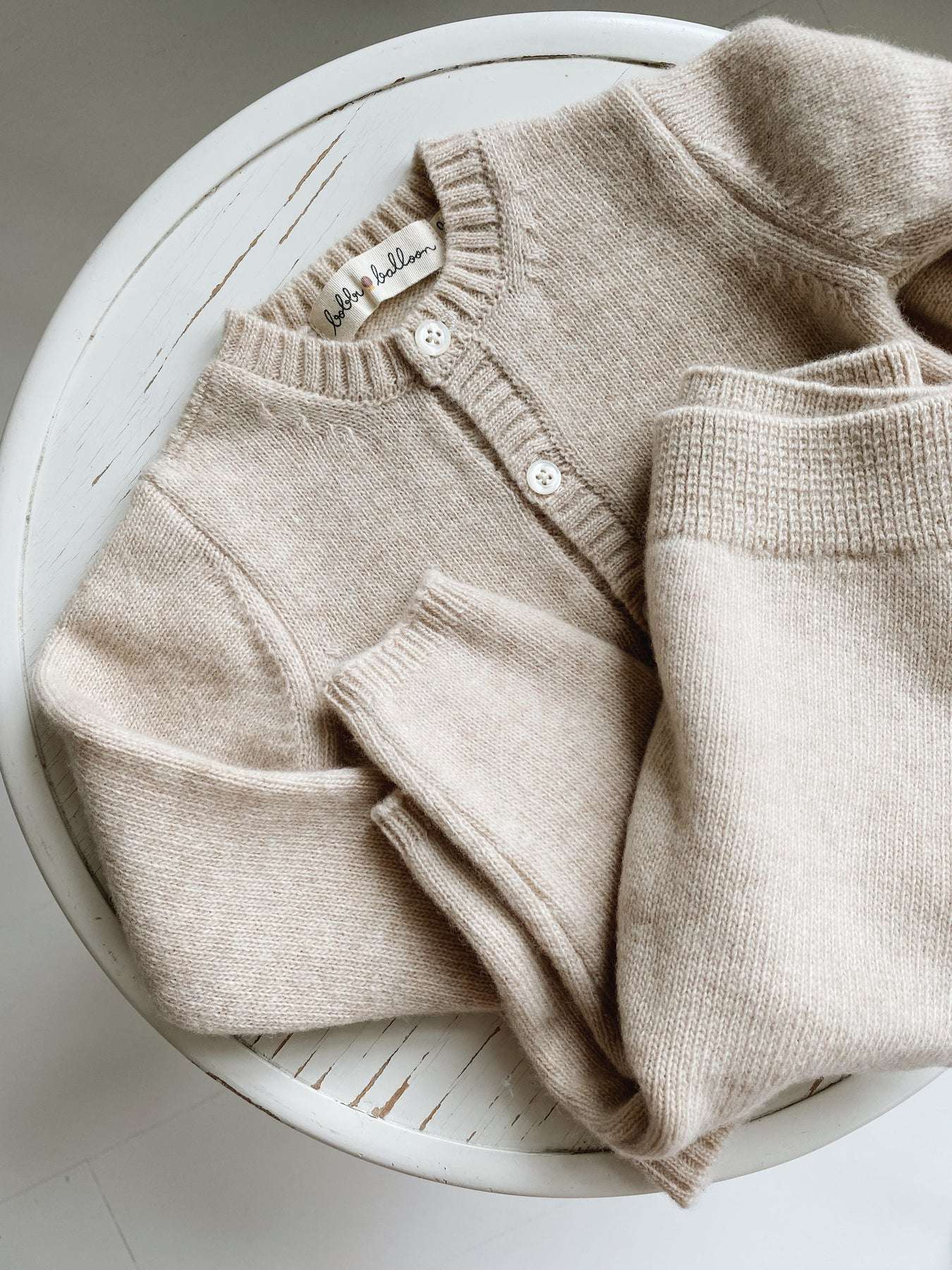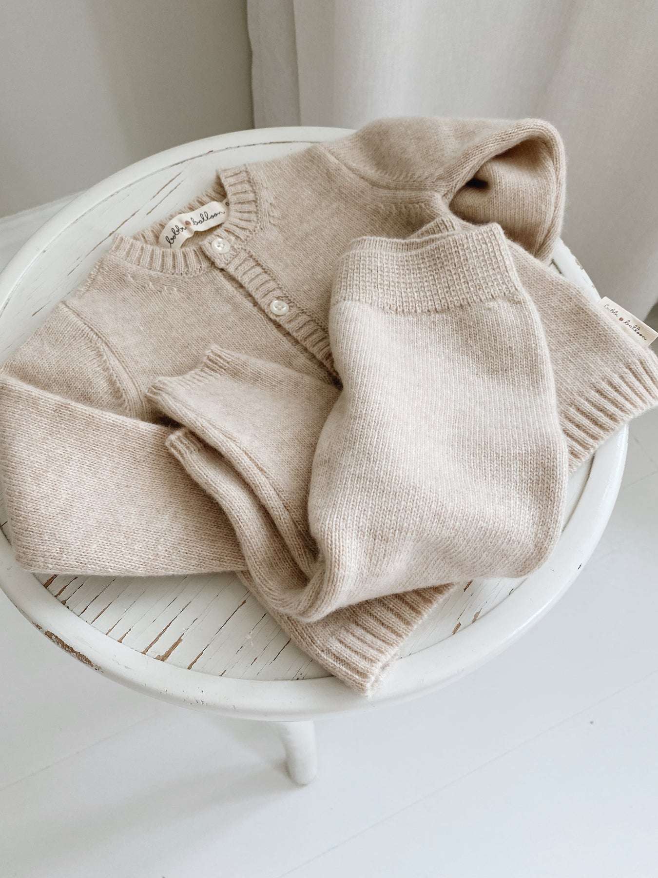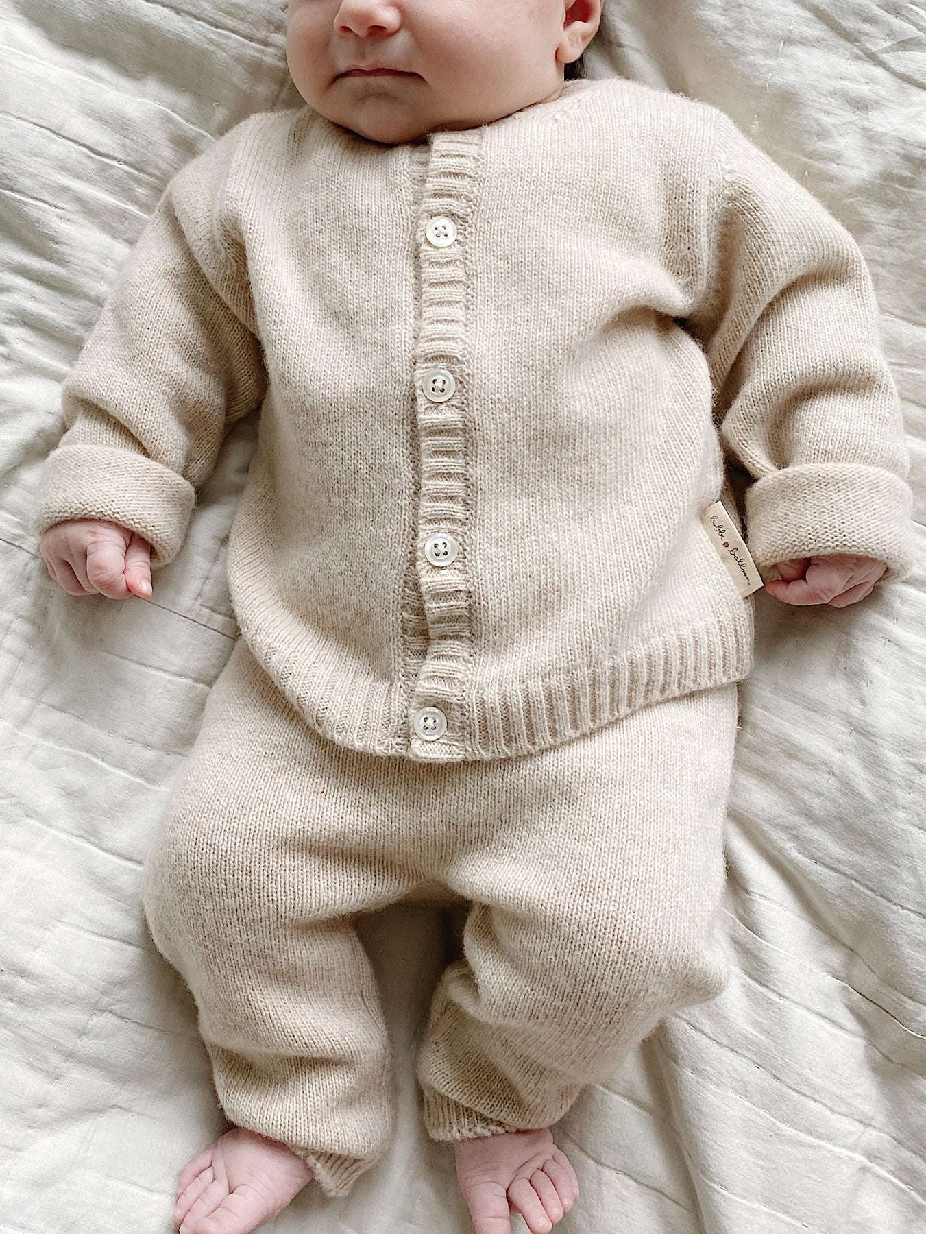 The Bobbi Balloon Knit Set comes in the sweet sugary Caramel color. The soft and comfy knit set is made for newborns, babies, and kids in the softest baby wool material. The soft baby wool and its fit makes the Knit Cardigan and matching Knit Pants perfectly comfortable and ensures enhanced movement for your child.