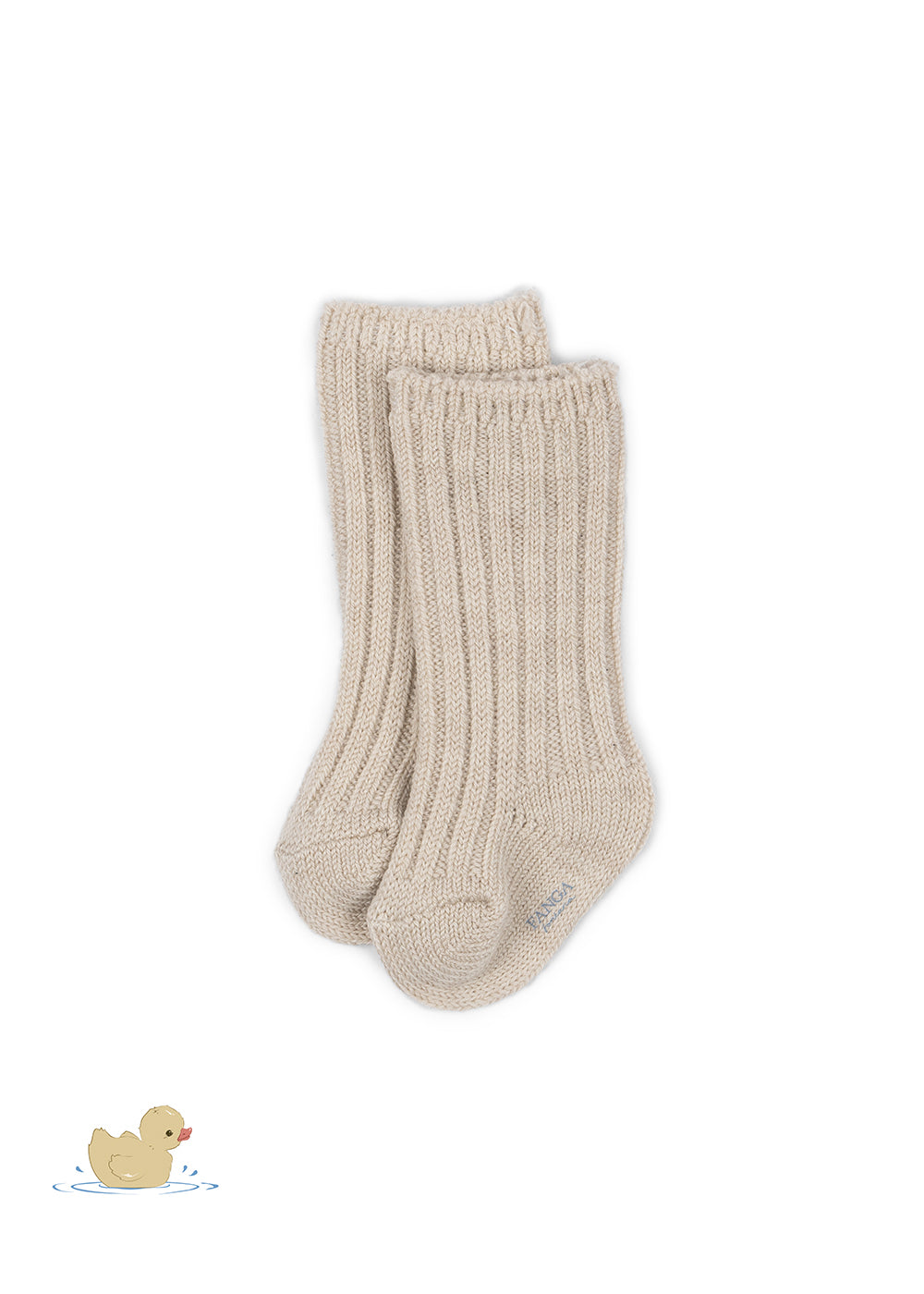 Heavy knitted socks made from 100% wool. Designed with rib cuffs for a comfortable fit that doesn't slip off those sweet little feet. Made from 100% wool