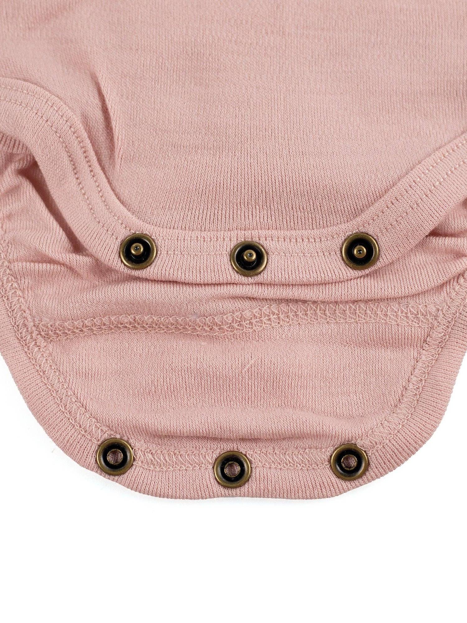Keep your baby cozy and comfortable with this Merino Wool Long Sleeve Wrap Bodysuit in Misty Rose. Made from 100% premium merino wool, this soft and breathable one-piece naturally regulates your baby’s body temperature.