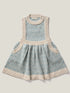 Full bodied pinafore in our double knit, grow stitch jacquard. Natural horn buttons at shoulder, ribbed pockets, and chunky rib finishing.