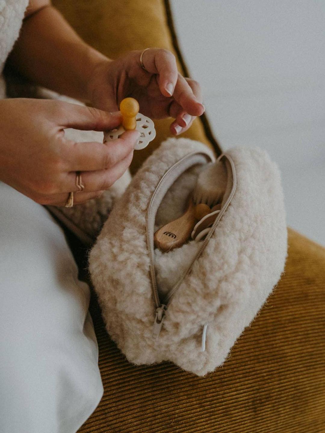 Melyn, functional elegance. Made from 100% natural wool, Melyn is a versatile and timeless pouch. Perfect for storing beauty essentials in the bathroom or slipped into a diaper bag, it also adapts to the little treasures and toys of toddlers. With its sleek and natural design, Melyn accompanies every moment of daily life with simplicity and practicality. Dimensions: 23x9x9cm