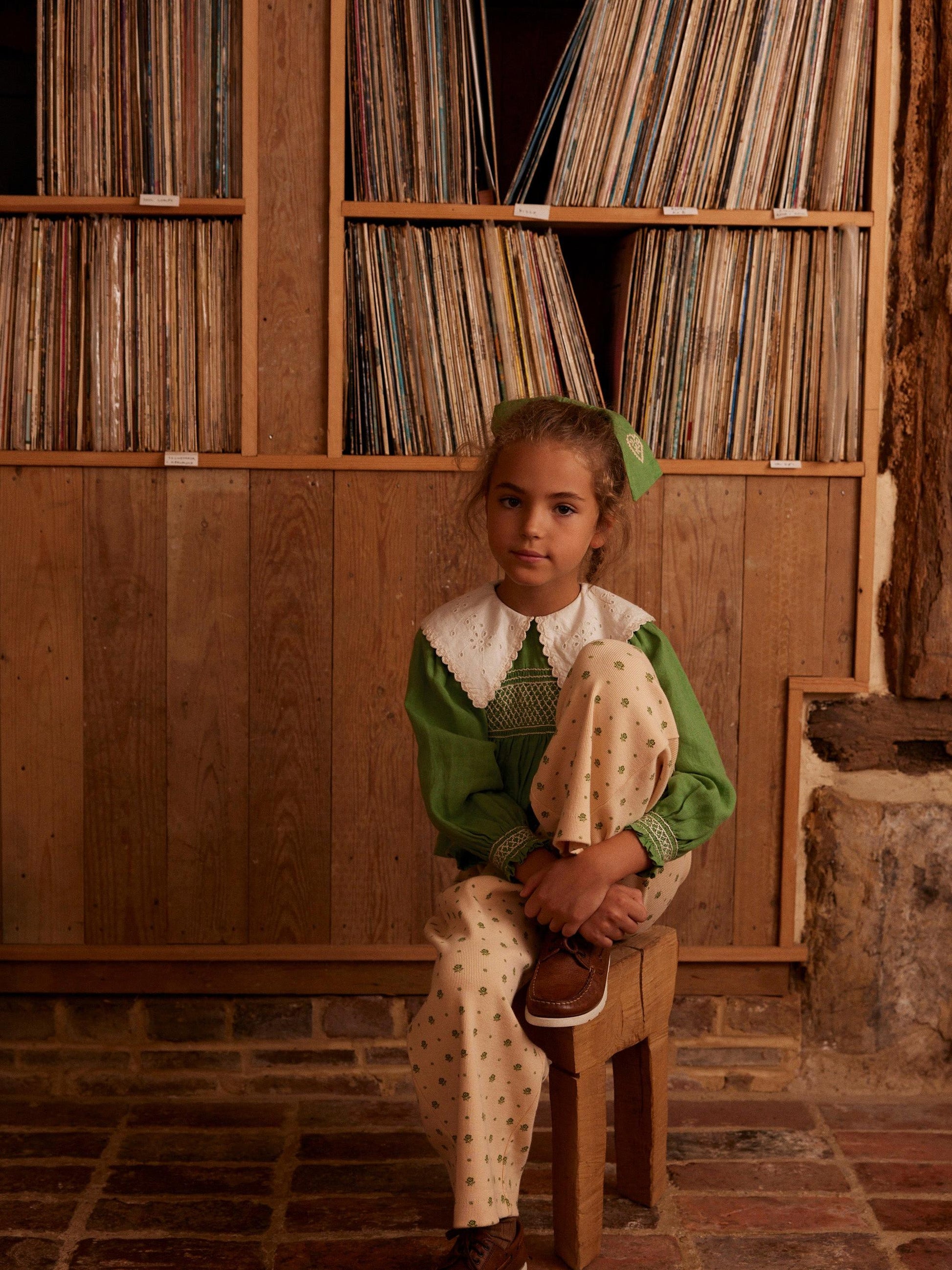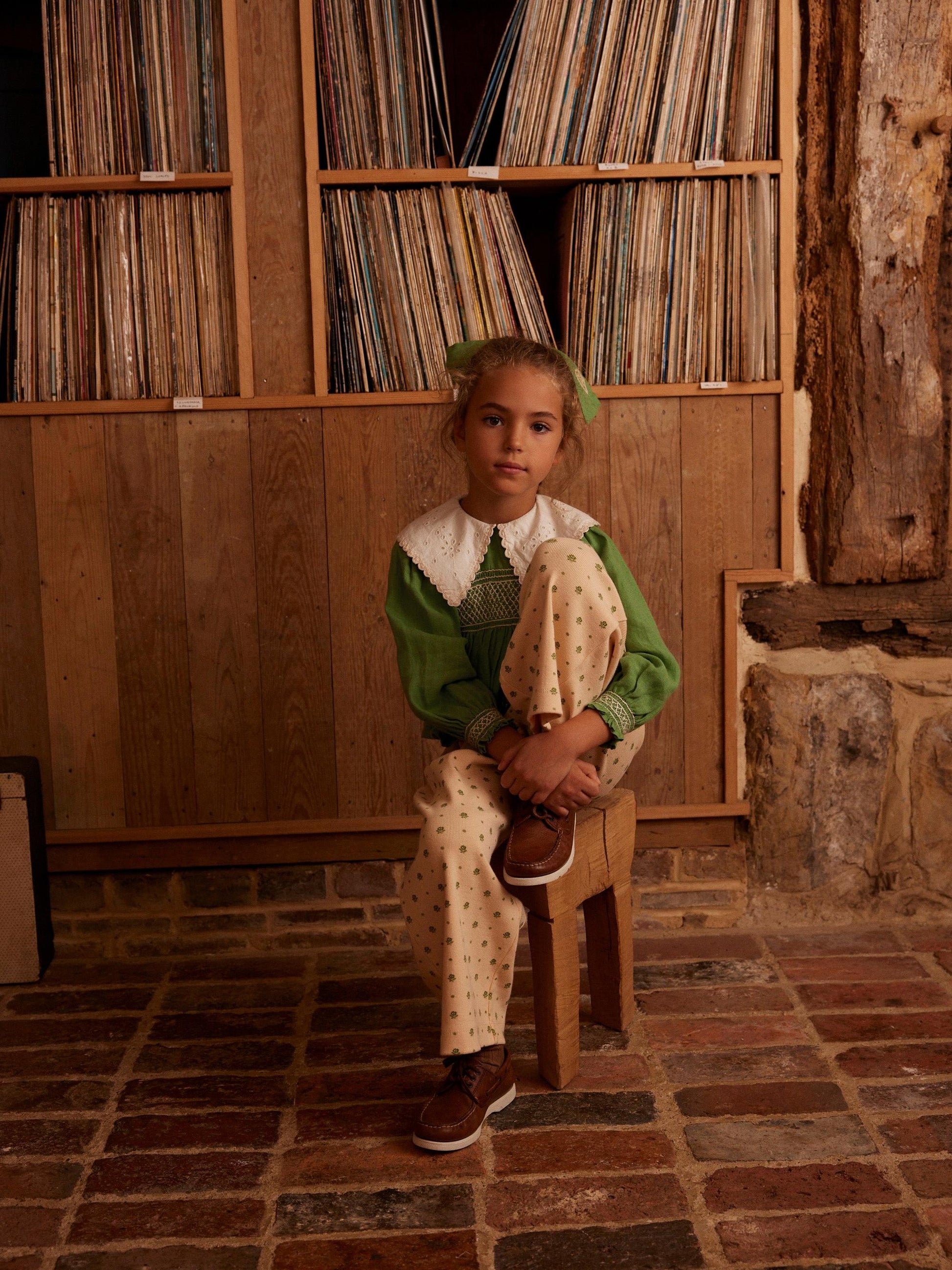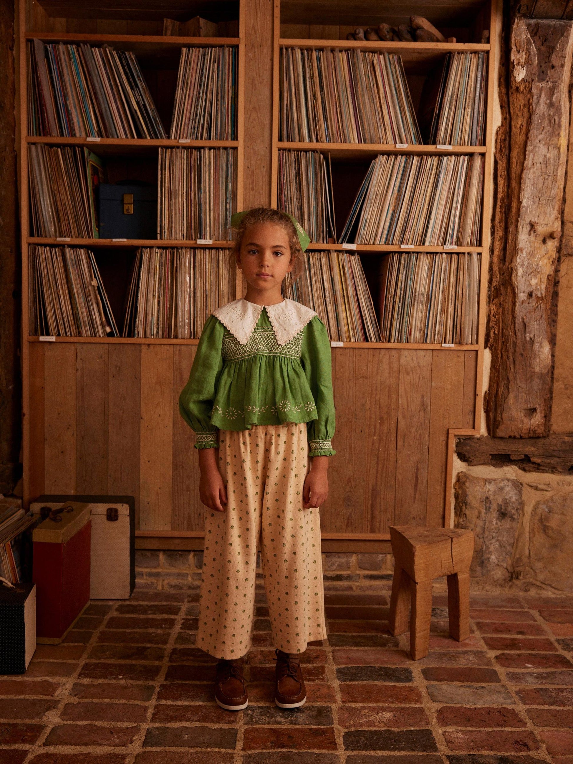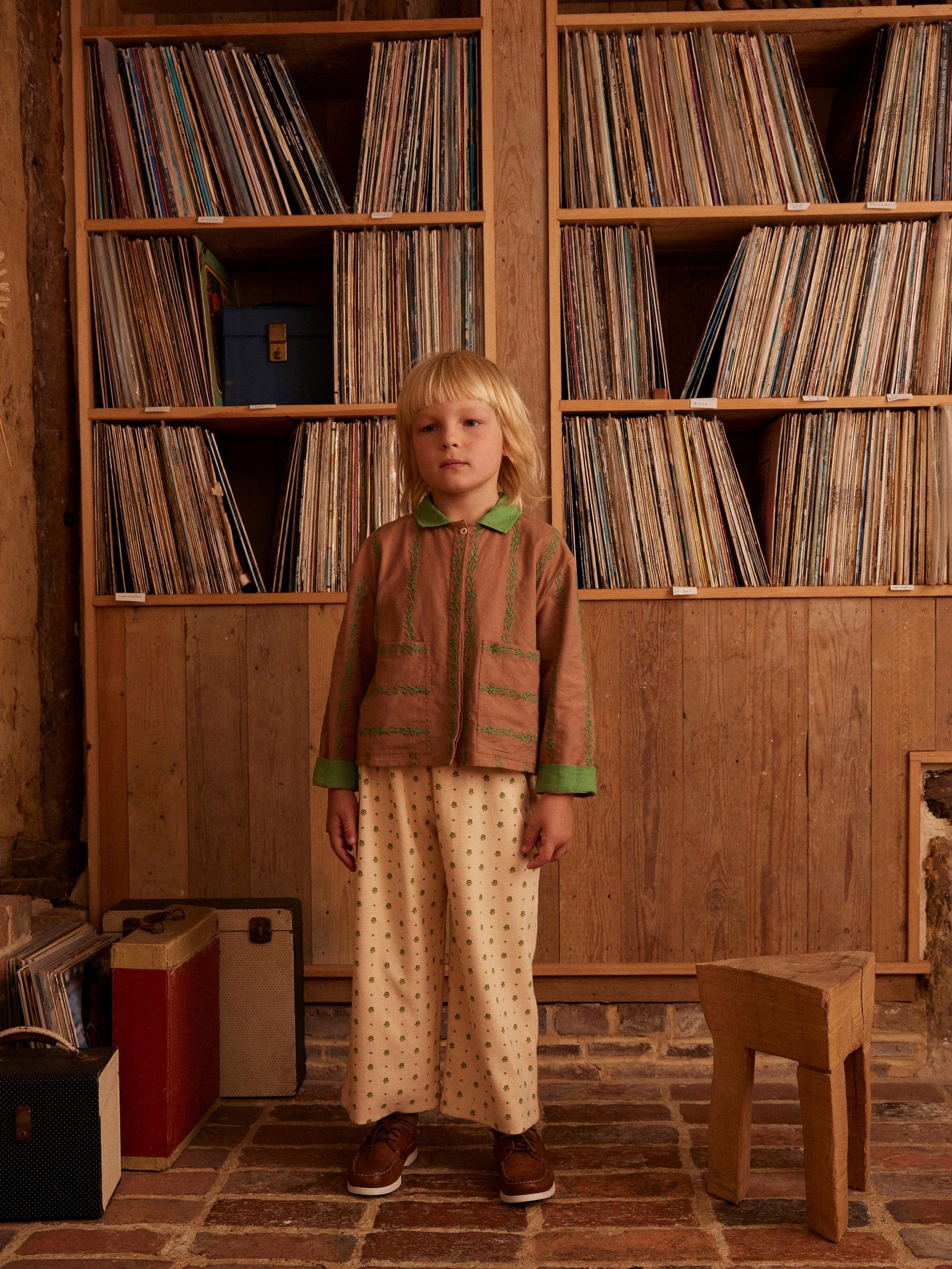 Crafted in the softest ribbed cotton jersey in ‘meadow calico’, the Mila trouser has a relaxed, wide leg silhouette with elasticated, adjustable waist for extra comfort, perfect for everyday play. We love her worn with our blouses or mixed and matched with our jersey tops.