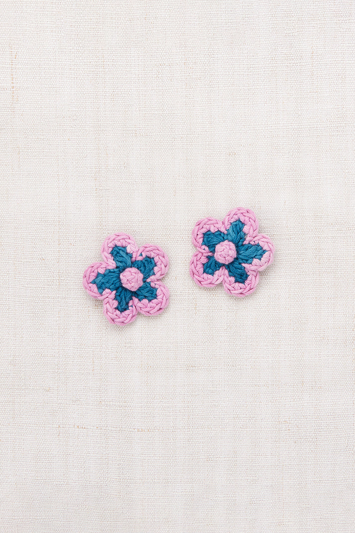 A two-color hand-crocheted flower set on alligator clips in Pima cotton. A little pop of embellishment for any look.