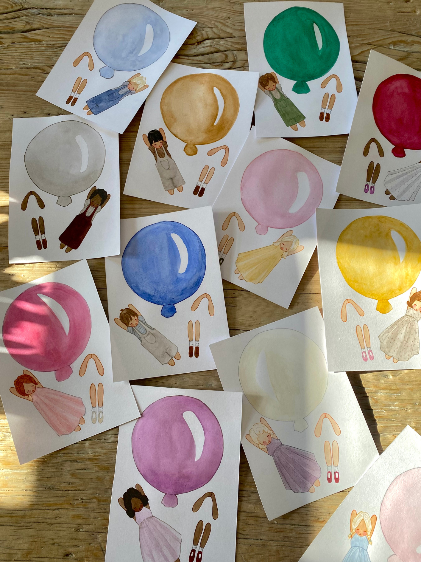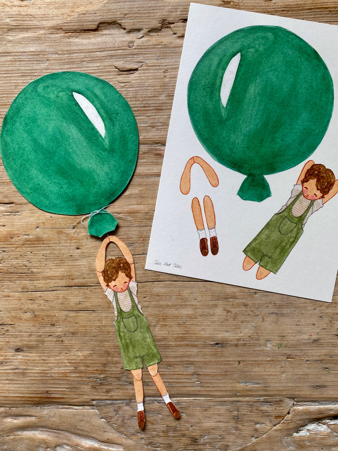Unique Danish design printed on sturdy 300g A5 card. This charming boy-in-a-balloon illustration captures the magic of childhood adventures. Cut out and hang in the nursery, above the bed, or beside a favorite photo. Add a name in the balloon for a personal touch, making it a sweet birthday surprise or keepsake.
