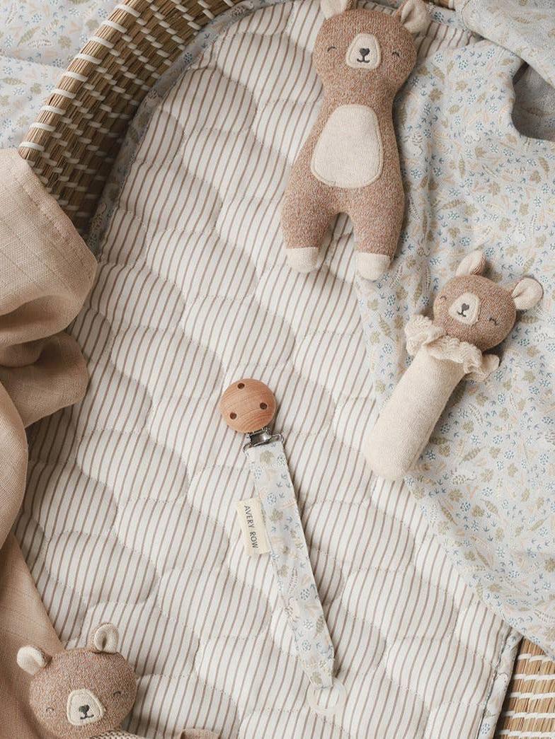 Meet your little one's first friend. This sweet brave bear rattle has been designed for little hands to grip, shake and squish. The rattle inside gives this a playful, interactive element and the little neck ruff adds sensory texture and cuteness.