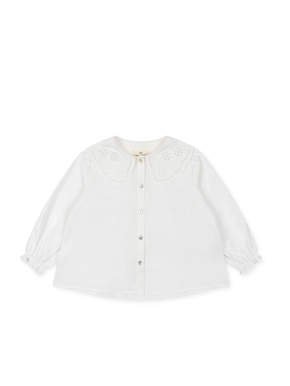 Rilo Collar Shirt in Optic White from Konges Sløjd. Made from organic cotton with a classic collar detail. Soft, breathable, and perfect for both everyday wear and special occasions.