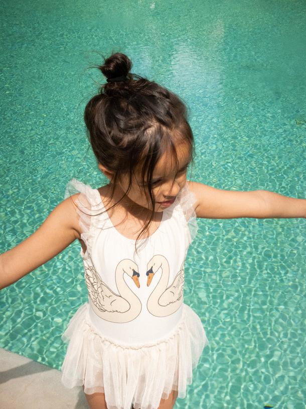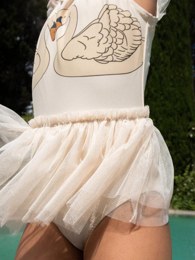 Ballerina Swan Swimsuit from Konges Sløjd in the color Brazilian Sand. Made of 80% recycled polyester and 20% elastane with OEKO-TEX® certification