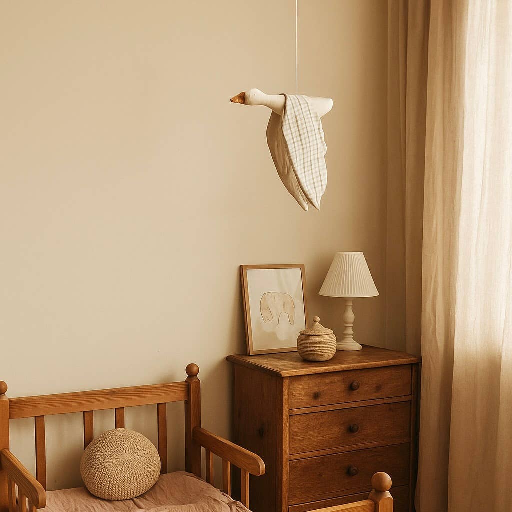 Fabric bird to hang in the baby's room or any corner of the house. It is a carefully handmade decorative object, neutral and simple. It will bring warmth and a very personal touch to the space it occupies.