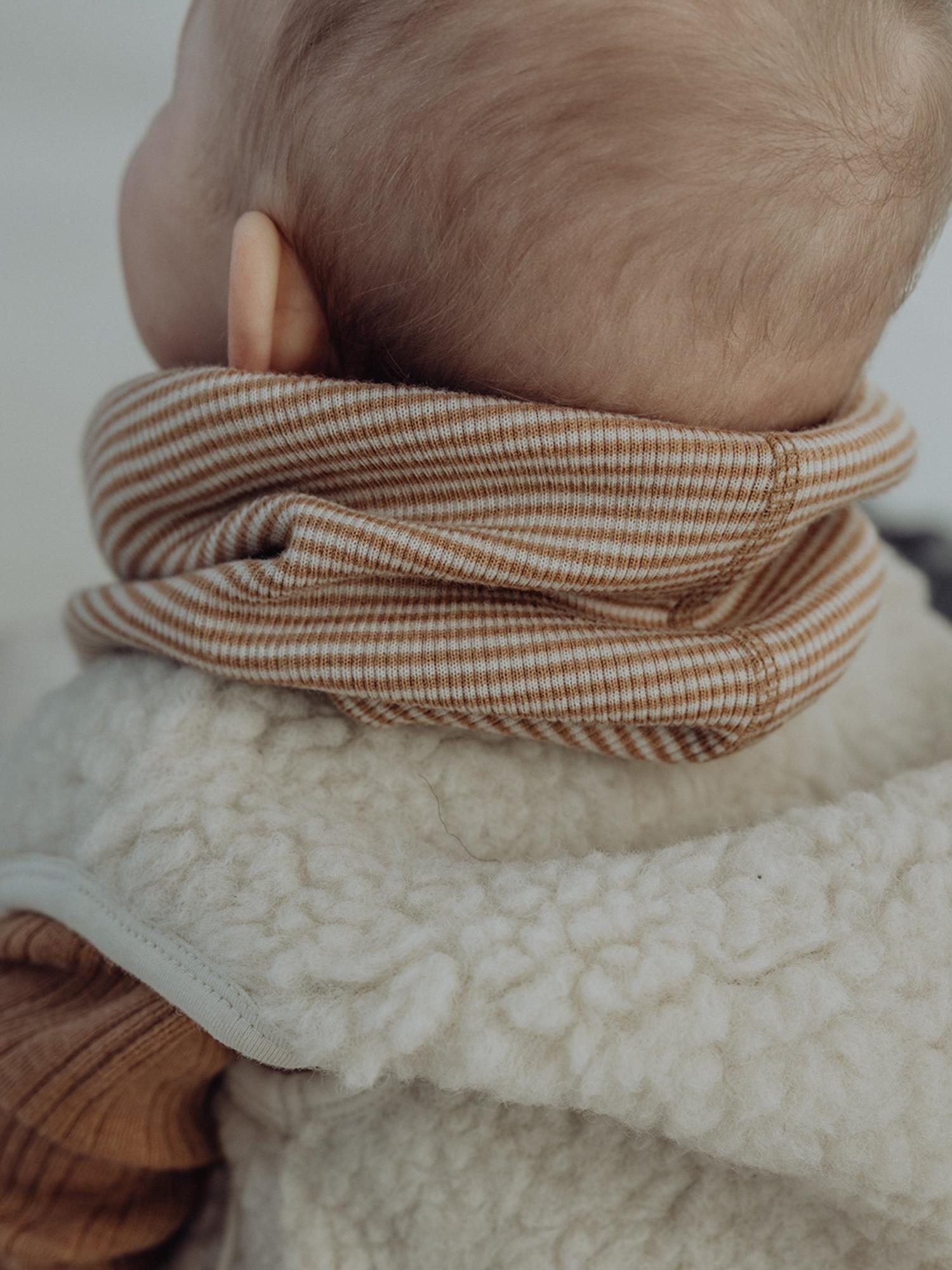 Keep your little one warm on the coldest days! Infinity scarf made from our signature wool blend rib knit.